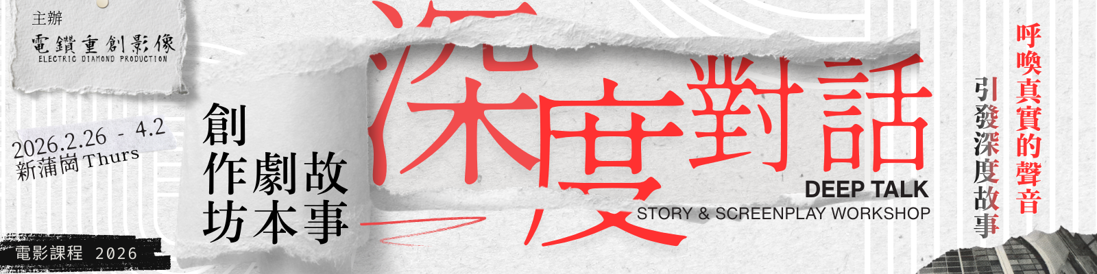 日期|𝟐𝟎𝟐𝟔.𝟑.𝟗-𝟑.𝟑𝟎 𝐌𝐨𝐧.(共5堂,其中一堂為戶外拍攝,暫定週末下午)